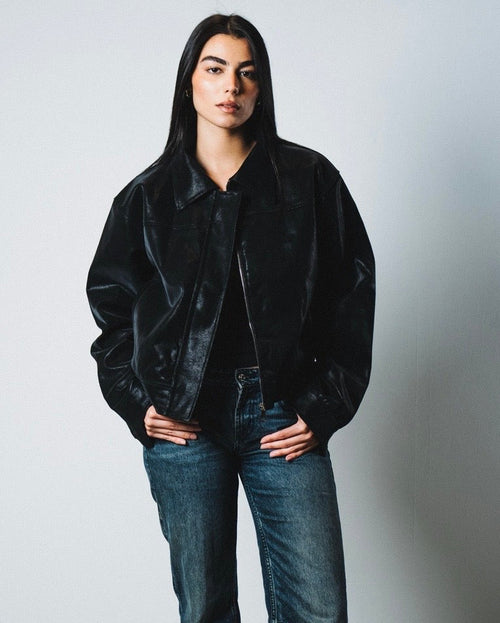 Black women leather jacket