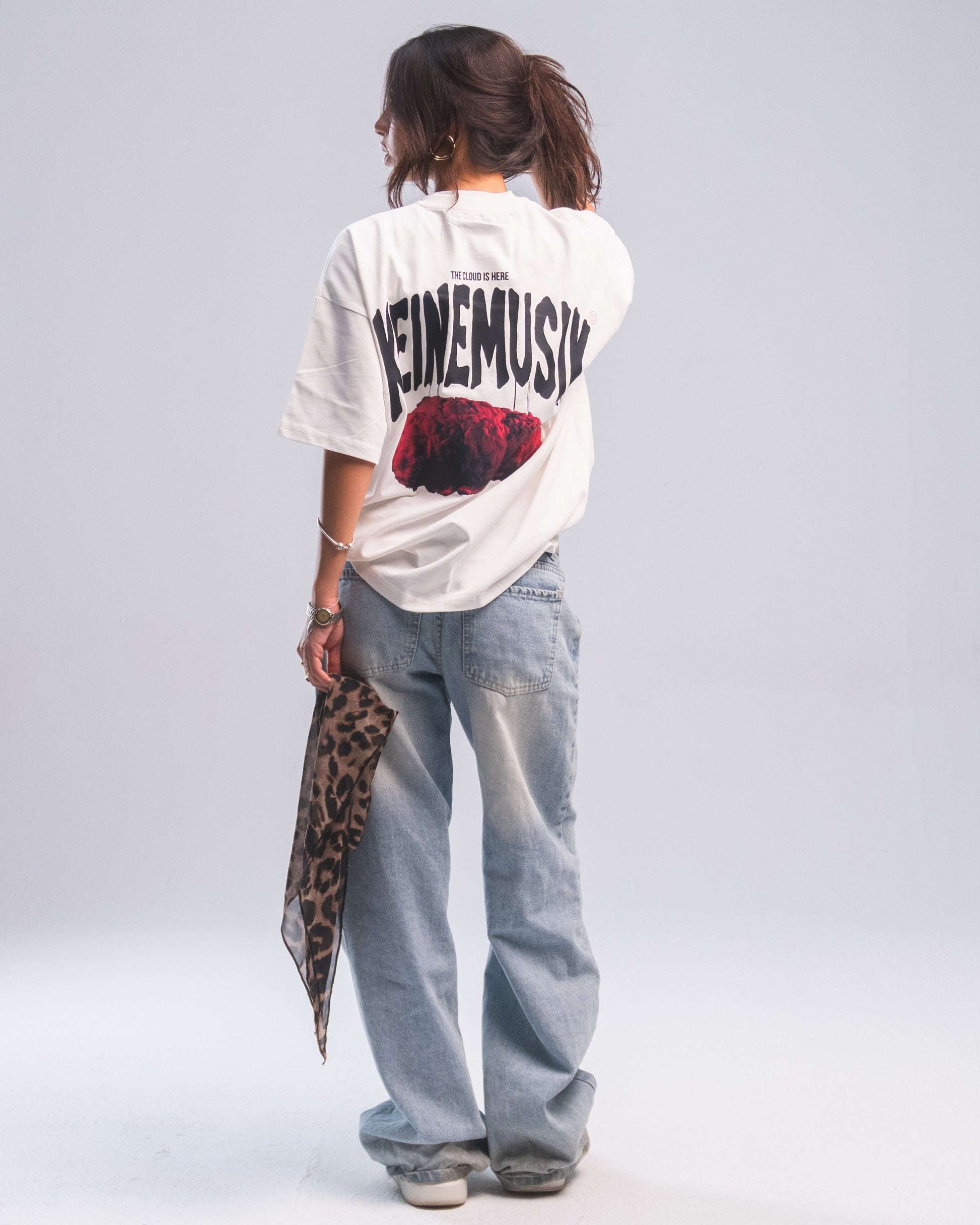 Elevate your streetwear game with the KEINEMUSIK “The Cloud is Here” tee. Featuring bold, oversized typography and a striking pink cloud graphic, this shirt is more than apparel—it’s a statement.